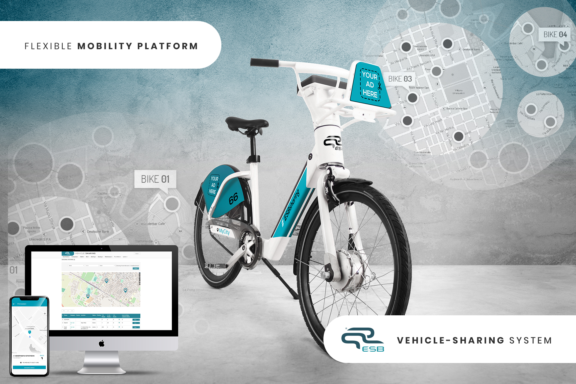 It is exactly in this framework of Urban Mobility that SITAEL presents its end-to-end and highly scalable sharing system based on an open mobility platform that allows the management of both docked and dockless fleets of traditional bikes and e-bikes. Flexible and adaptable to several situations for micro-mobility public services, the platform can integrate third-party systems via API and support kick scooters and motorcycles schemes. Geo-fencing and real-time diagnostic information are available in the management system thanks to ESB connectivity module, while the end-user smartphone App defines a new urban mobility in terms of contextual dynamic information, engagement experience and sustainable transport.