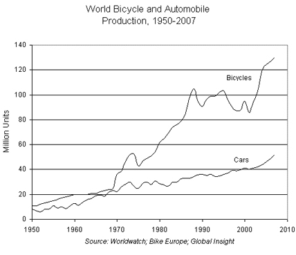 WASHINGTON DC, USA - The world produced an estimated 130 million bicycles in 2007more than twice the 52 million cars produced. Bicycle and car ...